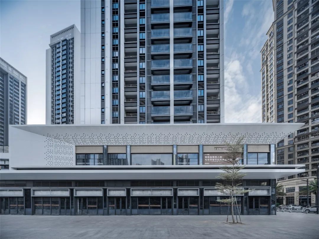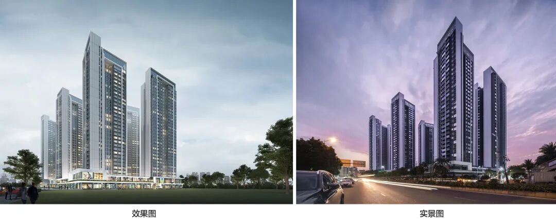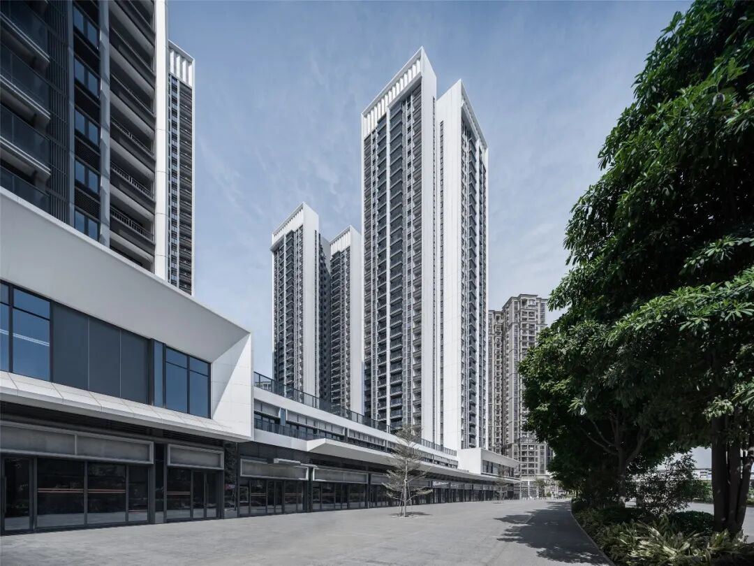 鉴于基地周边多为老套的简欧风格住宅,因此在设计伊始,项目便定调为现代公建化立面风格以展现与周边产品的差异性,从国际美学角度出发引领片区住宅美学,优化平湖人居空间,将建筑美学、功能、结构与节能等因素有机统一。