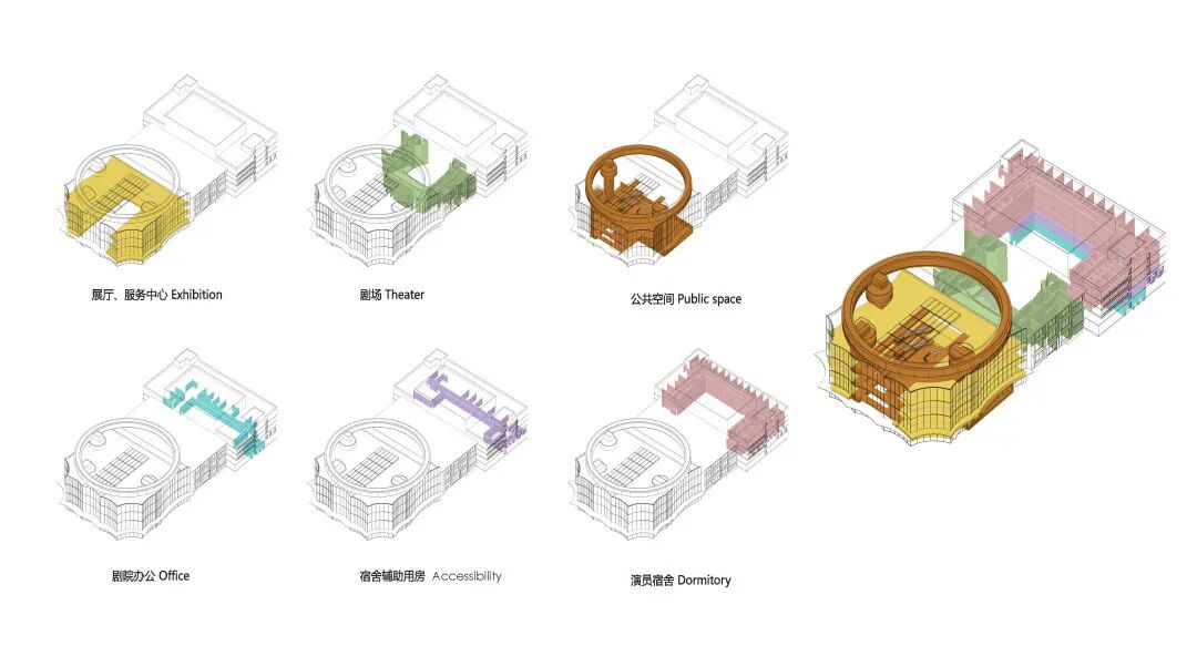 为了充分利用城市地块并实现未来规划的发展愿景,我们深入探索将原本单一功能的剧院进行扩展,构建一个功能复合的文化艺术综合体。