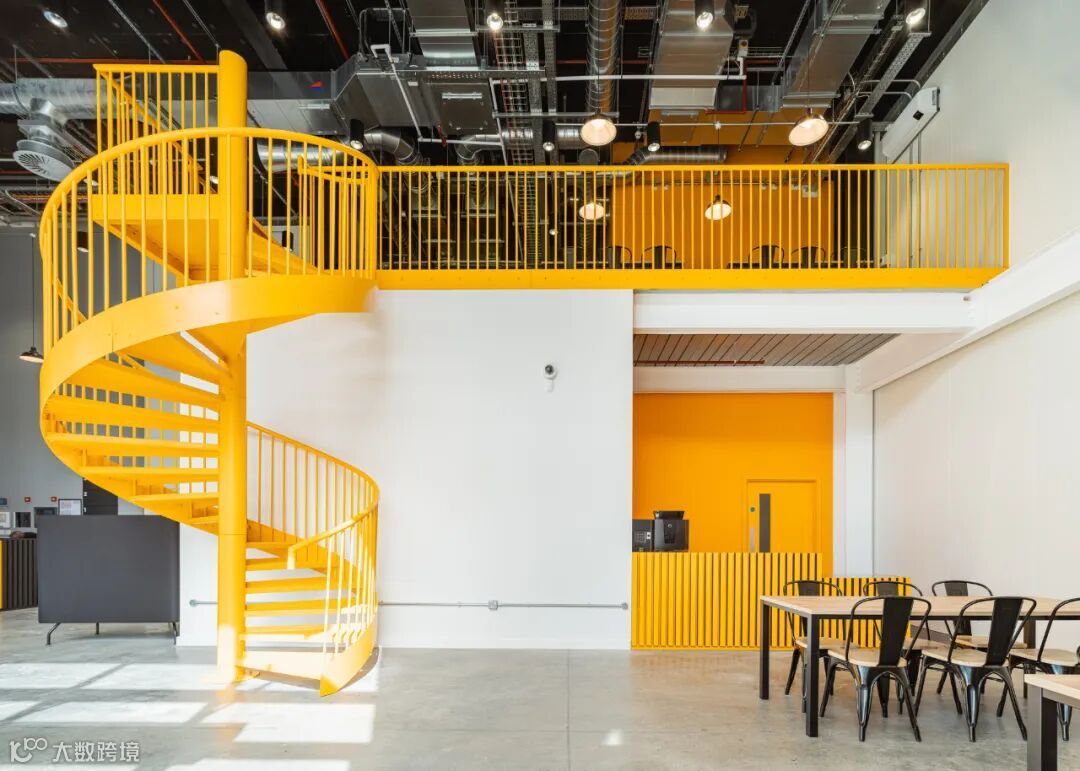 该计划以员工福利和社区为核心。配套设施包括底层咖啡厅、商务中心、休息空间、自行车停车场以及更衣和淋浴设施。此外,Industria 还拥有完善的公共交通设施,包括铁路和公共汽车,并提供电动汽车充电点。霍沃斯-汤普金斯与品牌设计公司 DNCO 合作,设计了图形大胆的立面,反映了建筑的工业功能,以及方案的路标和图形标识。内部甲板立面的波纹金属板采用了俏皮的银色和黄色棋盘格图案,灵感来自大楼的螺旋车辆坡道标志。