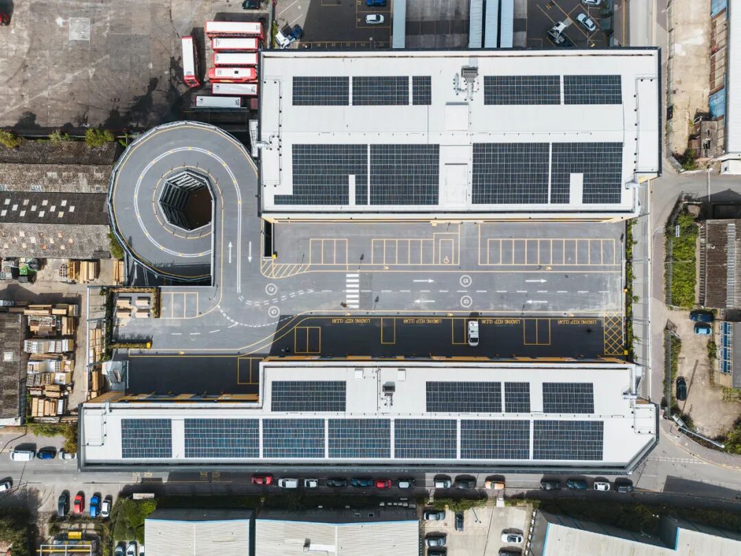 The building’s outer perimeter features pigmented precast concrete panels with a deep pebble texture on the ground floor and black metal cladding on the upper storeys. The entire façade was constructed using high-quality MMC panel systems. Outside, green walls and planting have been introduced at deck ends and alongside street frontages adding biodiversity, shading, privacy and visual interest. Contractor McLaren Construction Group’s extensive expertise in the industrial and logistics sector ensured efficient construction and high-quality finishes throughout.