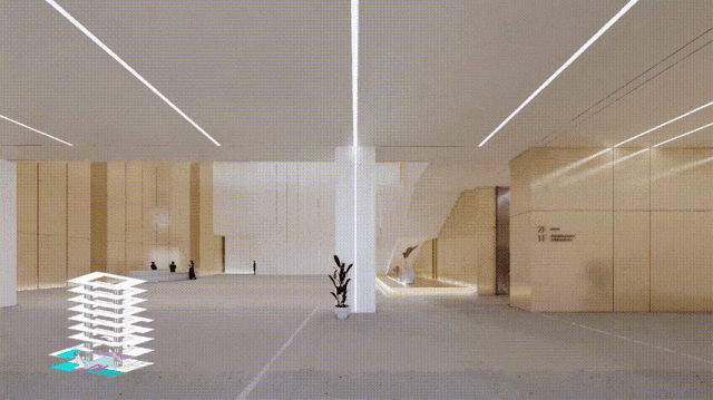 ↑图:30度角幕墙让建筑在景观面呈现通透玻璃盒子的视觉效果