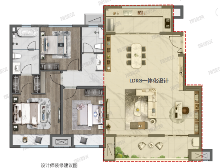 建筑面积约140㎡面积段户型是一个分水岭户型,在一些刚需、刚改楼盘中,140㎡左右是最大的户型,另一些纯粹改善的楼盘,140㎡左右户型则是起点。