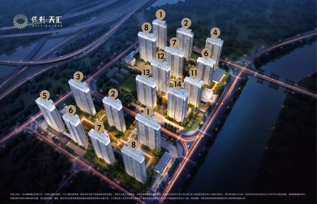 央企保利中原首座天字系作品——保利·天汇,择址郑州主城“正核”,CBD正南,并肩中原福塔,1环2河3公园,汇聚一城繁华,缎筑城市封面作品。项目总占地约112亩,总建面约29万方,容积率2.99,规划17栋24-27层住宅, 总户数1788户,是三环内纯粹低密社区。