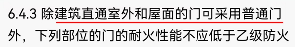新规明确了:直通室外及屋面的门可采用普通门。