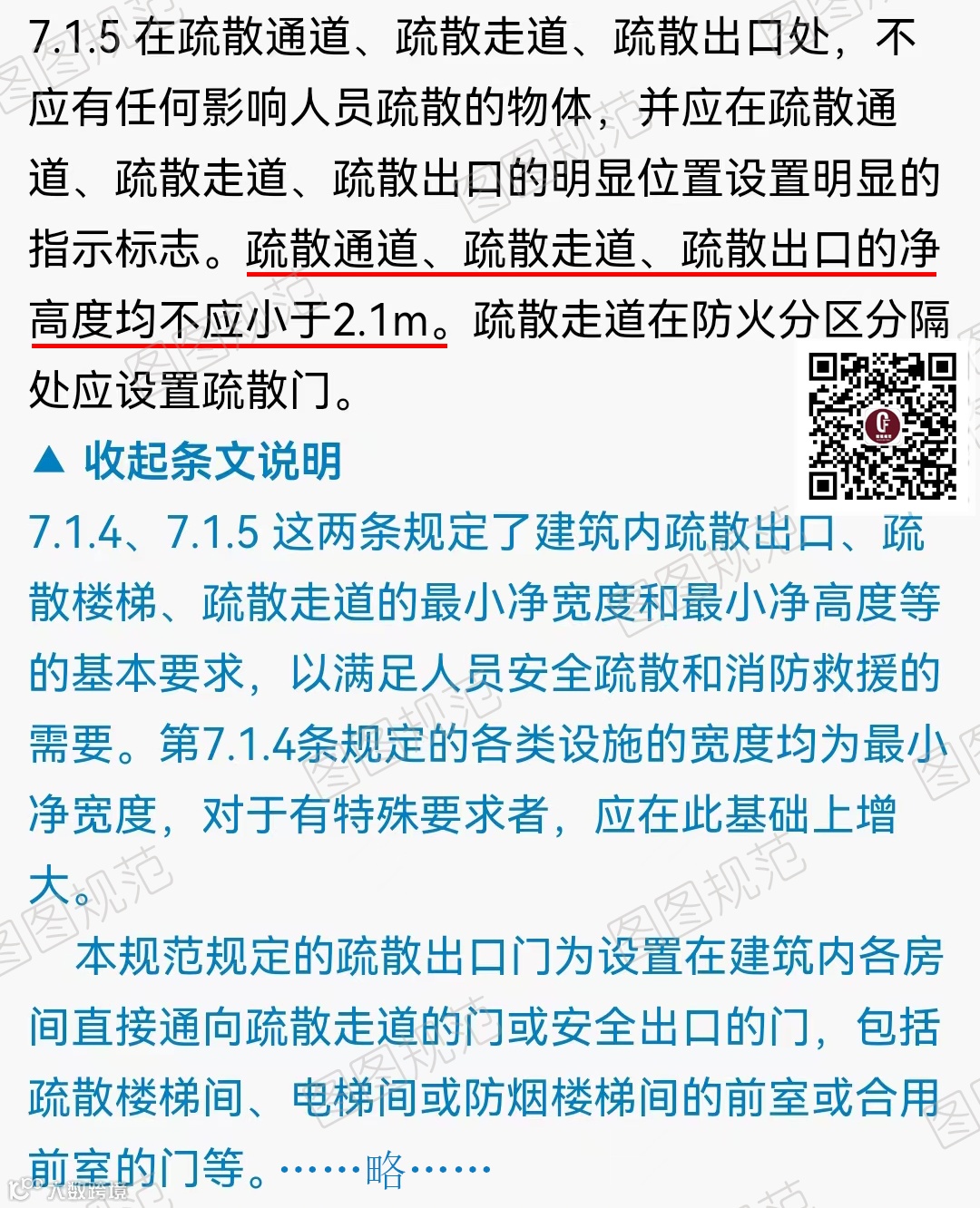 此处关于楼梯净高2.1m,《建筑防火通用规范》与《民用建筑防火通用规范》的规定不一致辞。在《〈建筑防火通用规范〉实施指南》中有也解析。