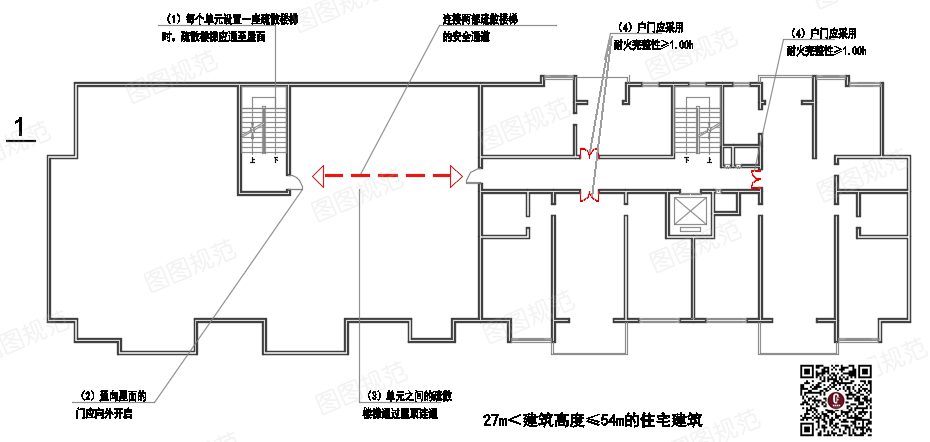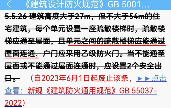 原仅要求建筑高度27~54m的建筑,屋面要连通。
