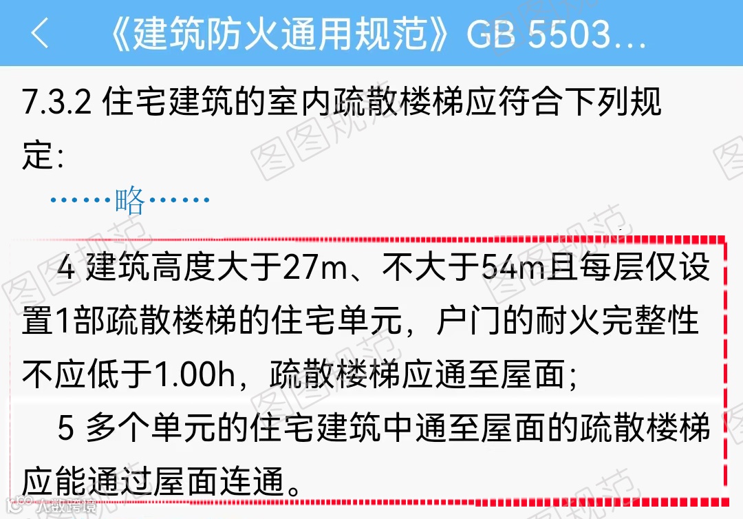 图图规范认为主要目的是防止人们在遇火灾情形下,跑至屋顶时却无路可选,不得不返回,耽误逃生时机且不安全,新规要求更为合理,安全性更高。