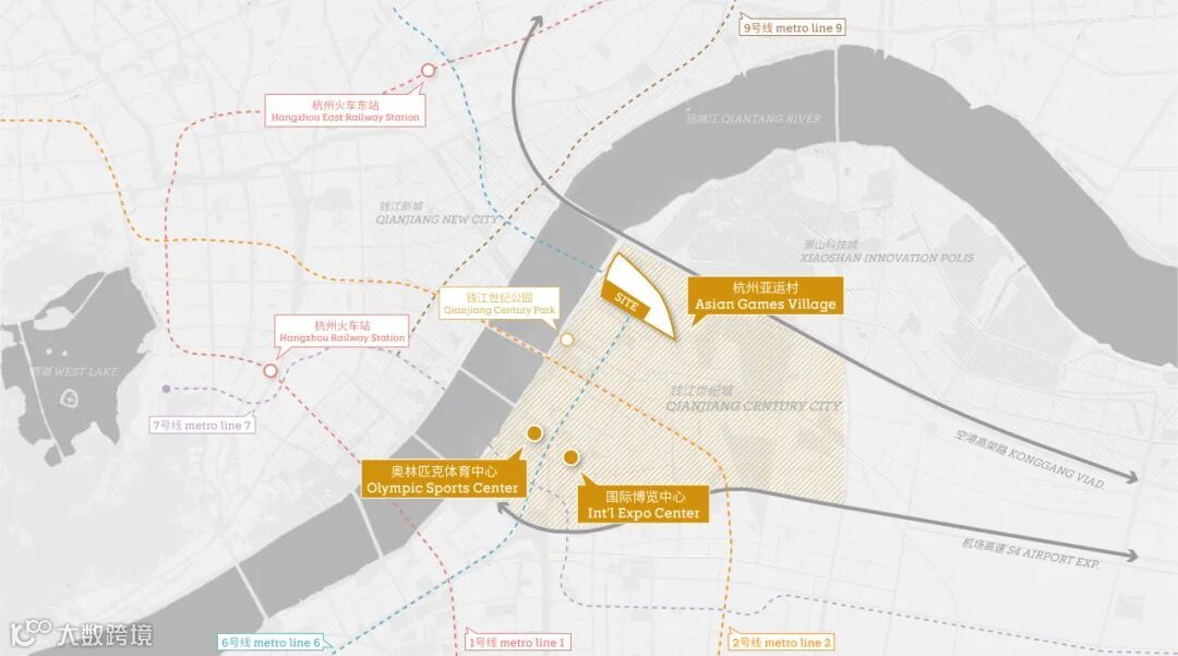 2015年9月16日,杭州获得2022年第19届亚运会举办权,成为继北京和广州之后第三个举办亚运会的中国城市。杭州亚运村位于钱江世纪城北部,由运动员村、技术官员村、媒体村组成。