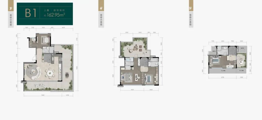 蔓维拉部分上叠端户具有270度的阔绰星空露台,通过宽景露台,室内与小区度假园林无界交融。