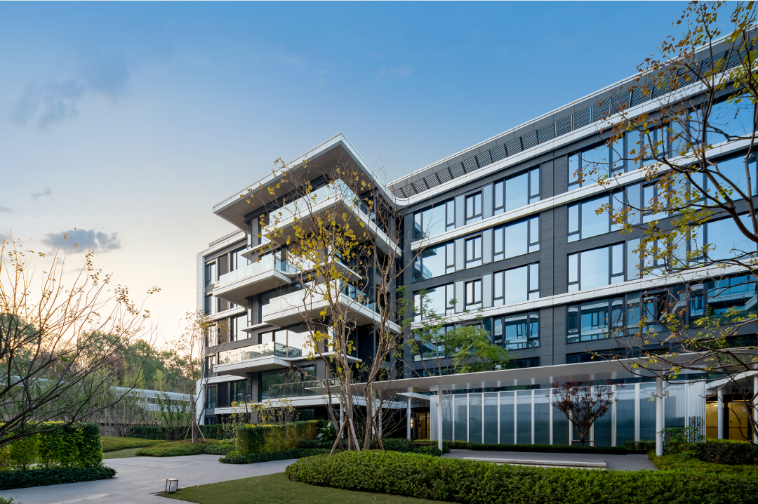层层错叠大挑檐格栅,阻隔上下视线,保证私密性的同时,又不阻碍风景的渗入,展现出显而不露的东方哲学,项目不惜成本,在建筑上增配大玻璃立面,极致窗墙比,让湖山风光无阻挡的进入室内空间,更展现出历久弥新的建筑质感。