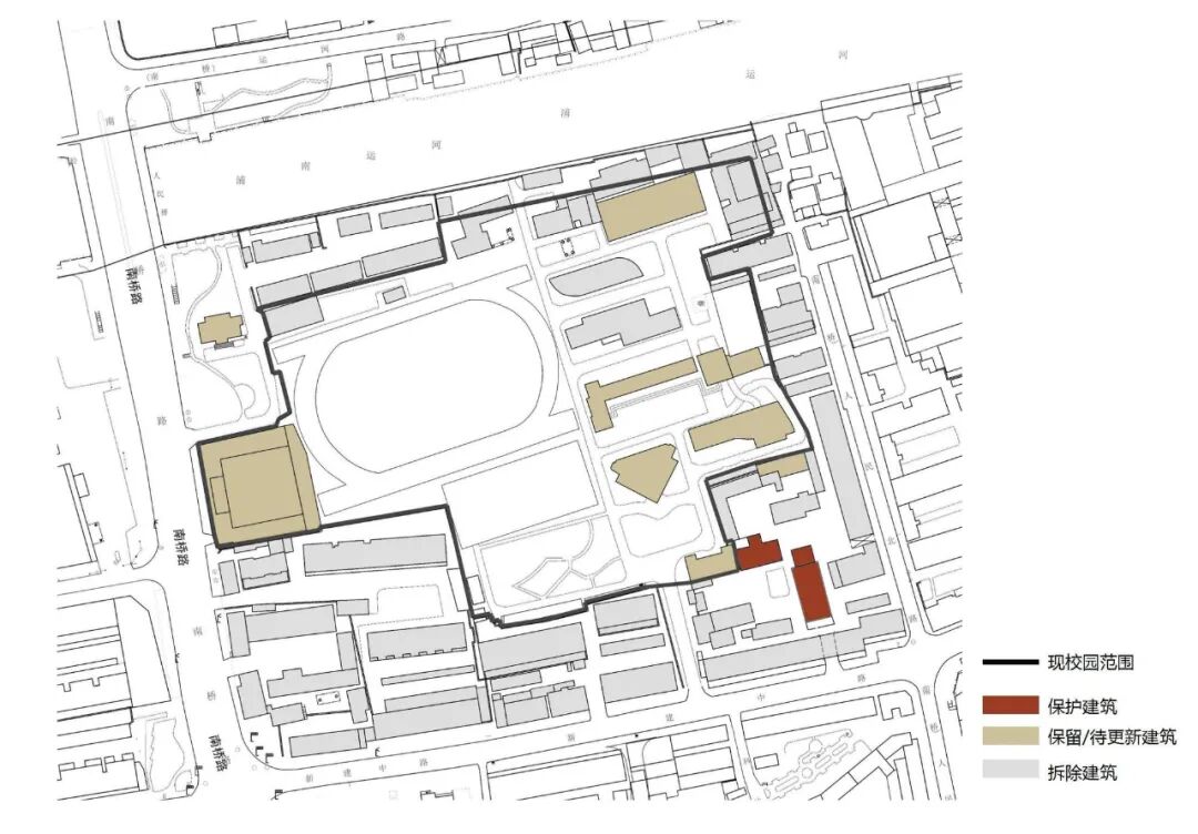 Established in the year 1978, Nanqiao Academy has undergone two relocations traversing through time. More than a century ago, this very site also played host to a missionary school. Upon the original foundation of the Academy, the library, lecture hall, theater, cafeteria, laboratories, art studios, music chambers, and student residences were situated in respective locations across the campus. As the completion of the riverside landscape belt along the canal, the pre-existing functions necessitated a unified congregation within a delimited parcel. This requires the design to ensure the optimal organization of school functionalities and the efficiency of surrounding traffic circulation, beyond which a surplus of communal spaces should be released in tandem with the waterfront scenic spaces for the enjoyment of the general public.