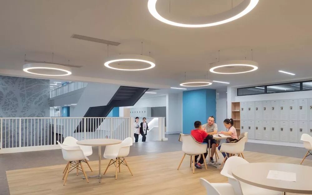 Architects believe that the change of guiding ideology of education will bring the change of teaching methods, and the change of teaching methods will inevitably put forward new requirements of teaching space that conform with the change. They think that the elements of campus design can be roughly divided into basic teaching environment (emphasizing internal relations) and interpersonal communication environment (emphasizing outdoor activities and interpersonal communication). These two basically constitute the campus indoor and outdoor environment of the campus. International schools adopt a class-selection teaching model, and students do not have a fixed classroom. Each classroom is set up individually according to grade and course category. Teachers teach and work in each classroom. Students change classes according to the schedule. Metal lockers are set outside for students to temporarily store their personal belongings when they change classes.