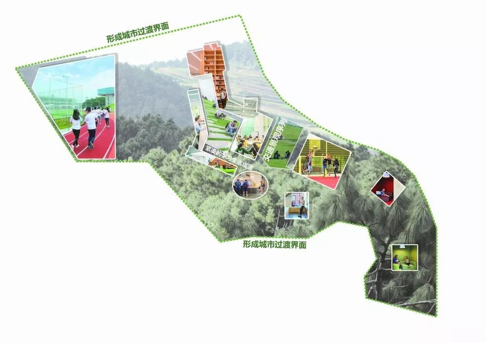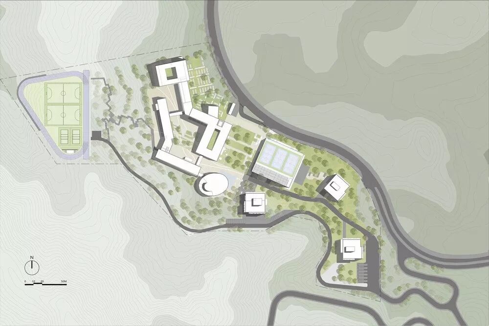 针对国际学校的特殊需要,户外运动领域仅仅是作为一个教师和学生放学后锻炼但不是体育课的主要地方,也由于特殊的山地地形,户外运动领域位于温柔峰会的一部分。它与教师和学生的主要活动区域有较大的高差,可以通过攀登石阶或蜿蜒的山路进行物流到达。