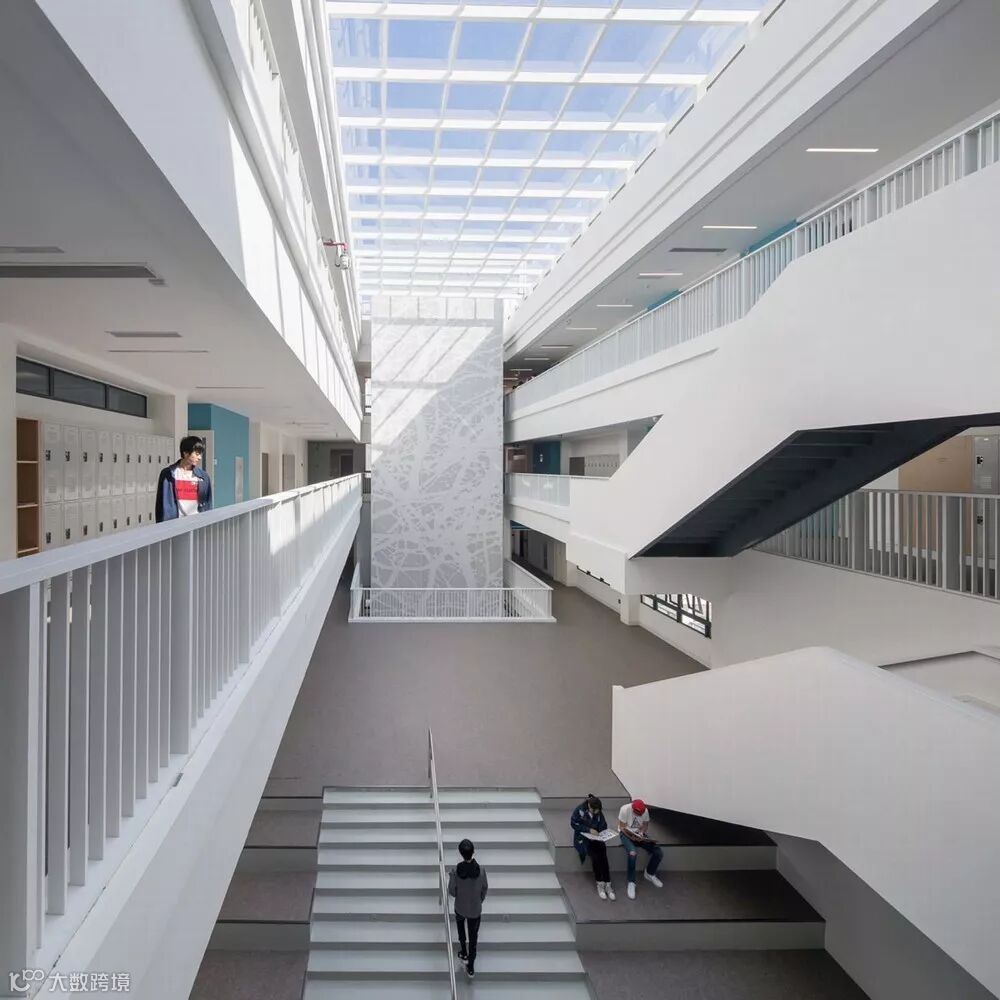 Architects specially designed many indoor or semi-indoor open areas for staying in different elevations of the campus. The purpose of designing blank space for sitting and lying down is to enable the most creative users to explore its potential, so that teachers are not confined to the classroom and can teach anywhere anytime.While students are not limited their school life at classroom, canteen and dormitory. They can find their favorite corner in the campus, a corner belonging to him, her and them. Simple traffic space is expanded and enriched by architects by various ways. Because of the addition of traffic functions to the open space, we do not need to worry it will become a passive space that nobody goes to.