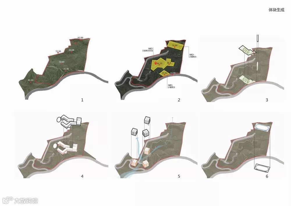 宿舍组对塔身采用分散点式布置,利用悬空塔身将施工对山区的破坏降到最低。宿舍楼群靠近车行入口,紧靠校车停车位,方便住宿学生每周通勤和行李搬运的便利。