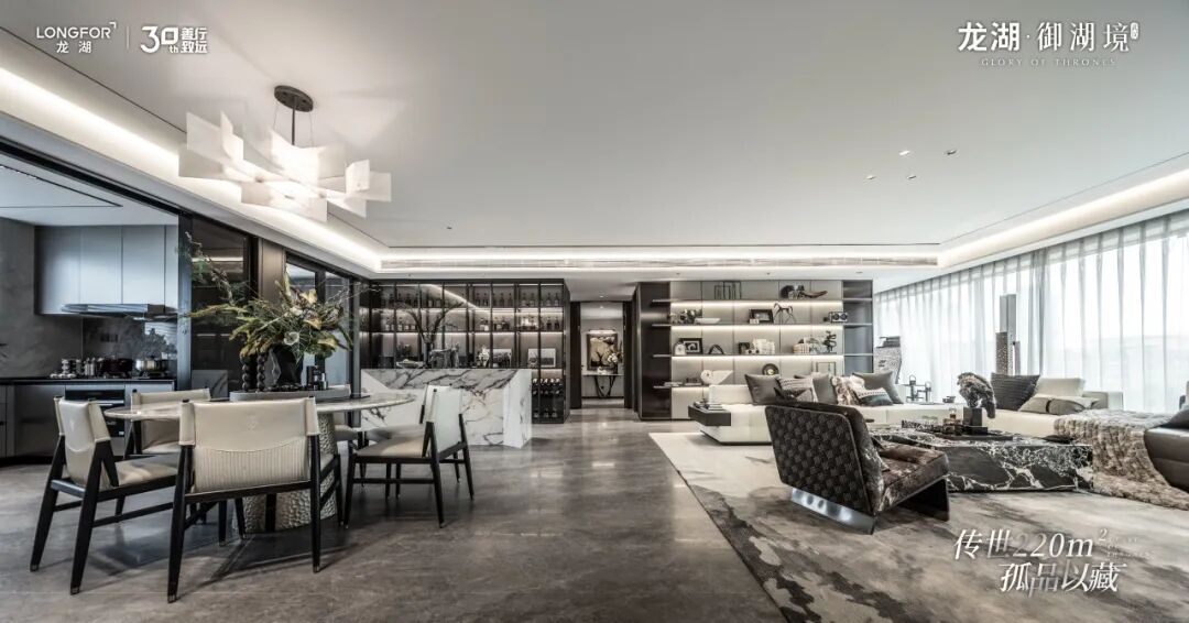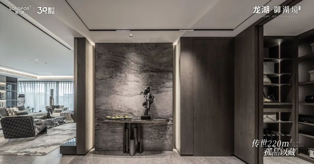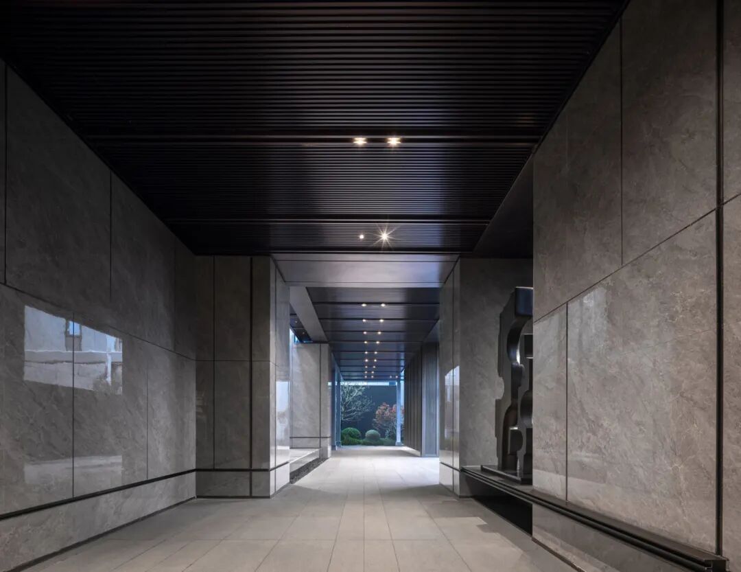 示范区位于大区轴线的北端,这一区域被精心设计,旨在充分展示出卓越的沿街界面,向外界展示社区的高品质形象。同时,在内部空间设计上,130㎡黑金沙弧形整石打磨的圆形水盘,和约5.8米高的火山岩板电动移门,奢华程度堪比“王府级”。我们致力于打造具有极高识别度的社区入口和温馨的归家大堂。
