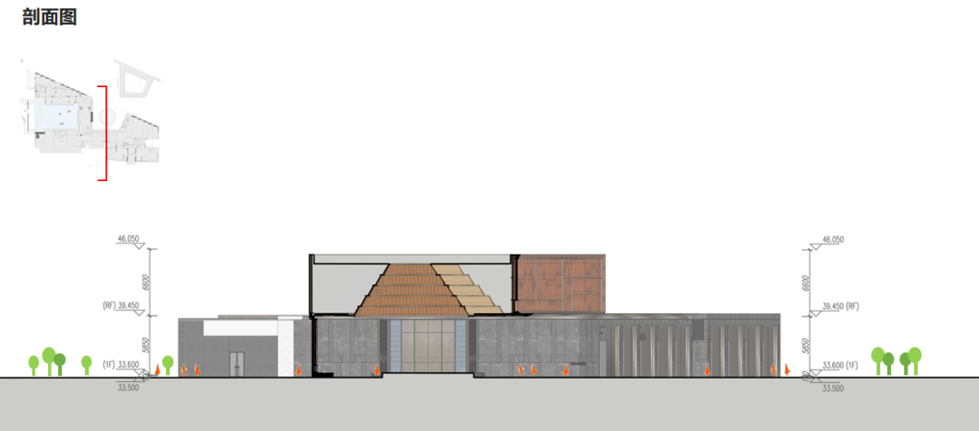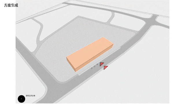 售楼处建筑北侧为城市主要界面,为顺应洪达巷西北-东南的走向,避免对城市界面产生严重的锐角空间。