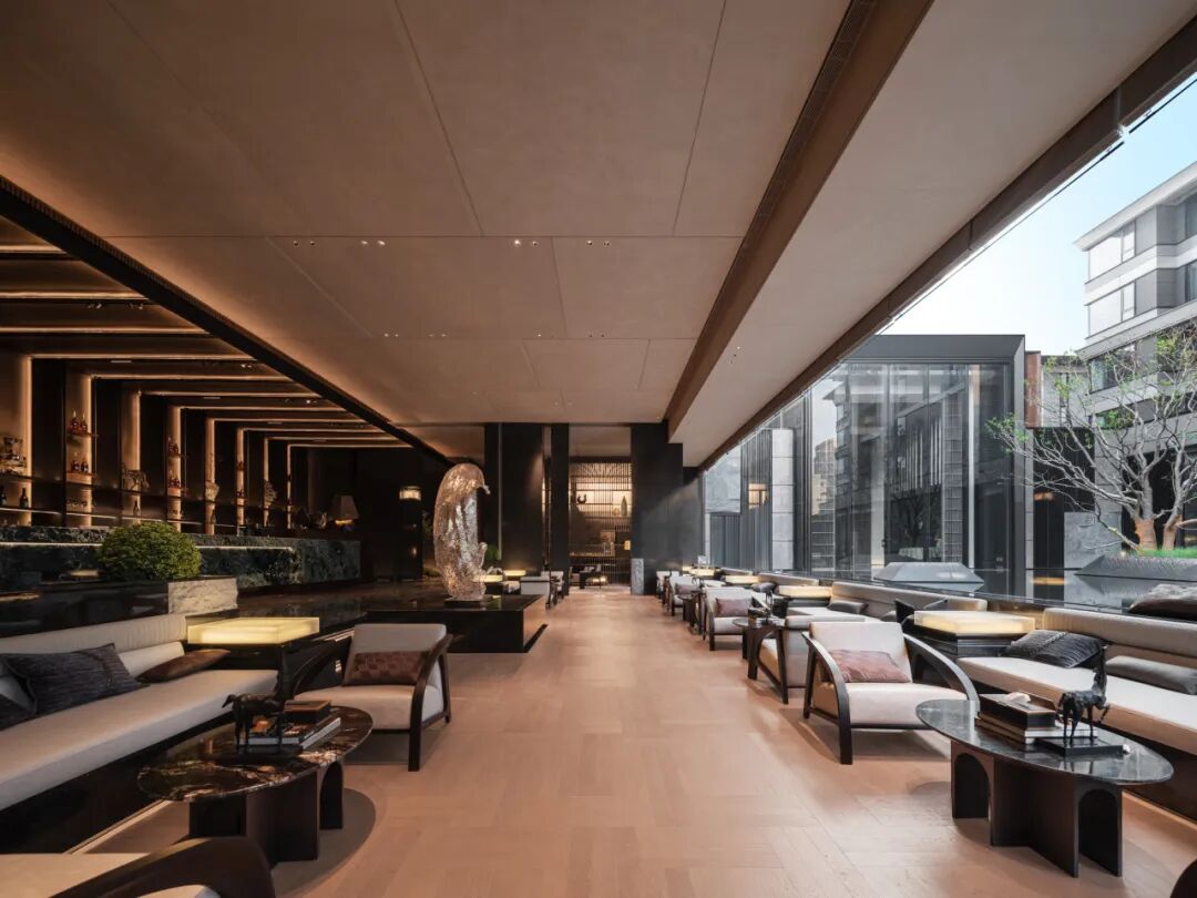 行政酒廊采用下沉式设计,复刻自西溪安达仕酒店,面朝湖光水院,享受会所质感服务。