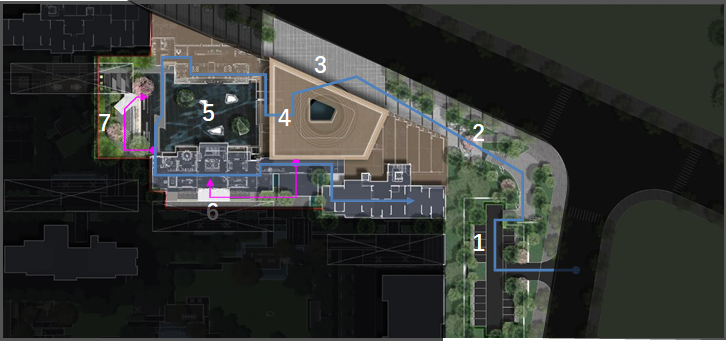 通过酒店式落客-神性空间-社区大厅-组团景观,注重高奢的项目品质、形成移步异景的美学空间,充分展示属于武汉的全新美学意境。在每一个节点、对景处做到呼应和对话,空间上的收放有度、环环相扣,提升游览兴趣和空间感受。