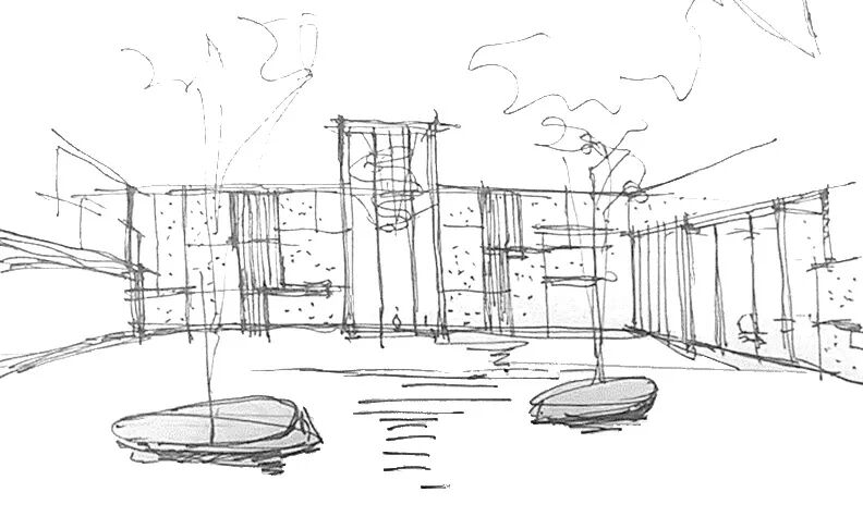 从前场进入会所内部,首层中心就是湖光水院,会所的点睛之笔,面积达约750㎡的沉静水面,可亲水互动,匠心独运。
