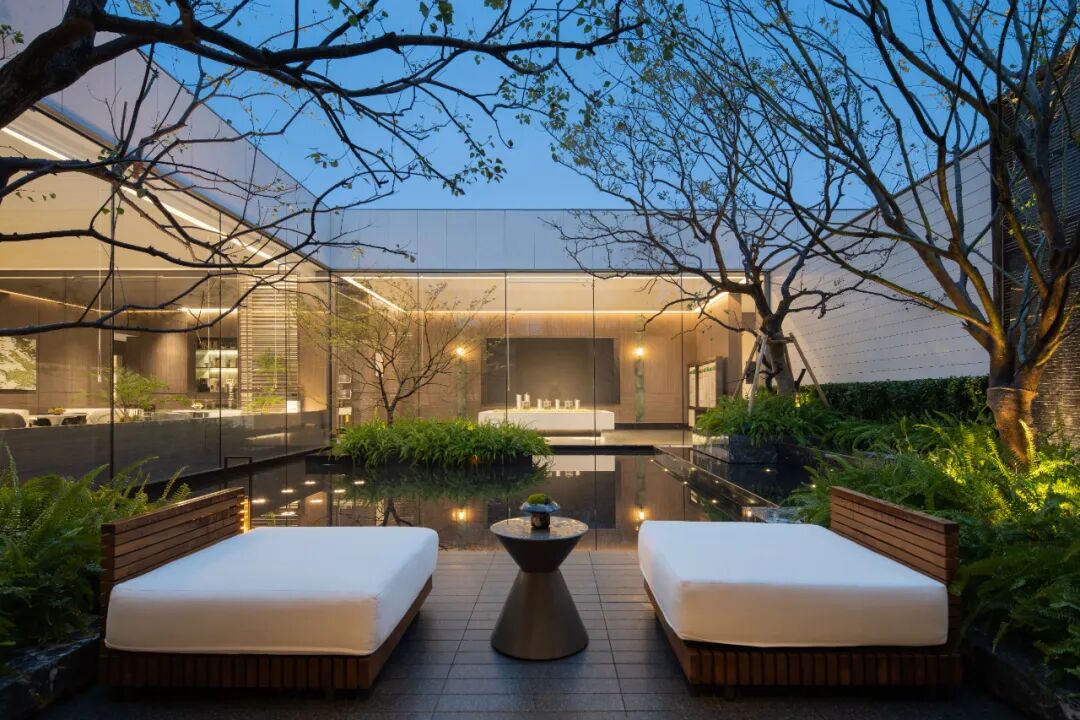 玖著会所,涵盖恒温泳池、名流私宴厅、私家健身空间、瑜伽室等功能空间,以国际WELL健康标准为理念,以高标准设备及空间质感拉近人与空间、人与人之间的亲密关系。