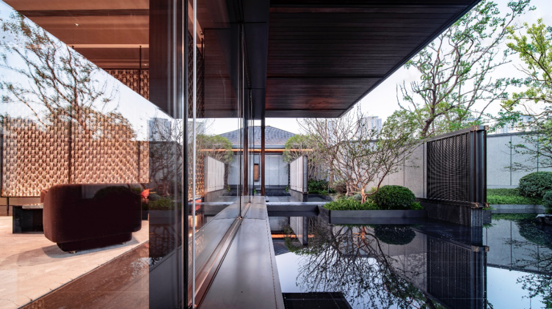 园林取网师“渔隐“之意,复刻其生长、包含及渗透的景观结构,通过廊、池、亭等古典元素,打造或隐或逸的生活空间。