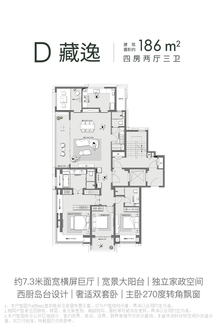 项目匠筑建面约175-370㎡滨湖藏品大宅,打造全南北双阳台、全明卫浴、全中西双厨、全系宽厅,全五开间朝南等世家臻藏的改善标杆,其中370㎡跃层产品,自带空中观湖露台。