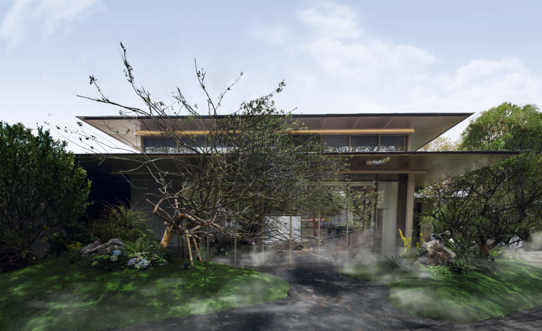 在建筑顶部,历经三次自我迭代的原创展翼飞檐,似笔锋飘逸的一撇一捺,配合层层飞檐的设计巧思,简约灵动,自然雅致,以现代设计语言,演绎经典中式符号的新生,呈现东方建筑的冠冕之美。