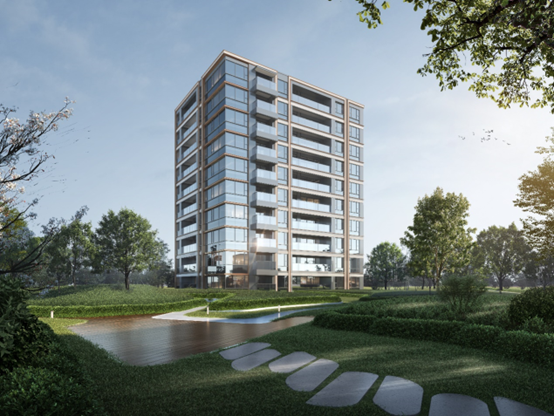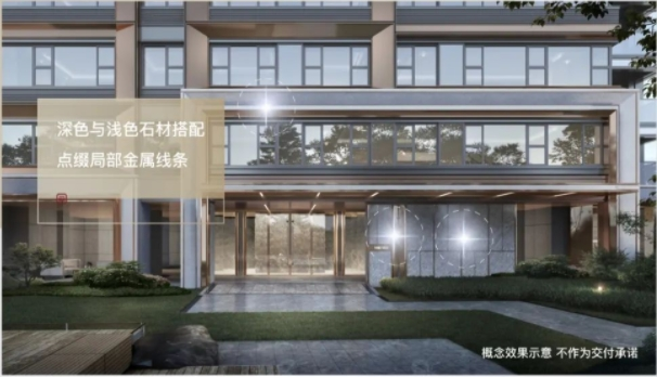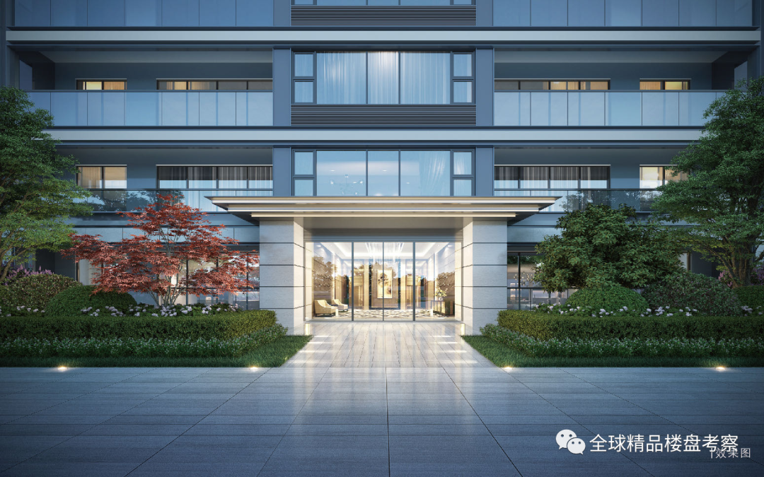 以新加坡Cluny Park Residences现代派建筑为灵感,呈现非常可观的窗地比,呼应绿城三段式经典立面;简约的屋顶飘板,令第五立面更加轻盈,也是对“庐系”的创新演绎。