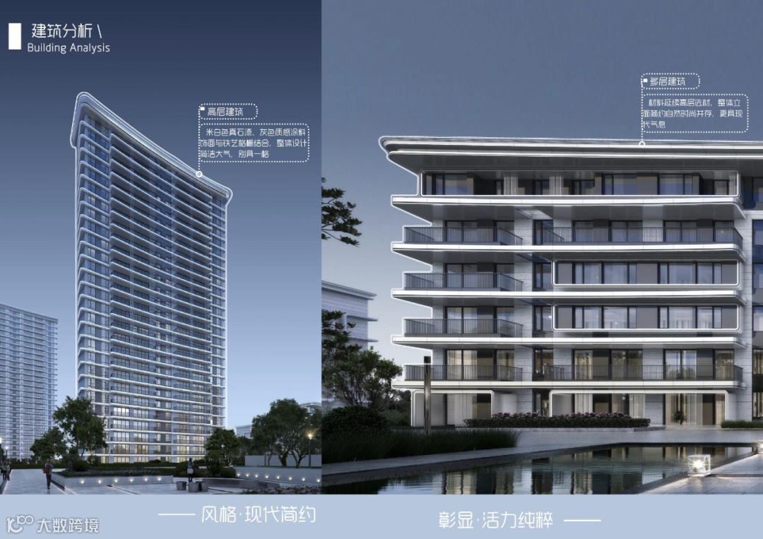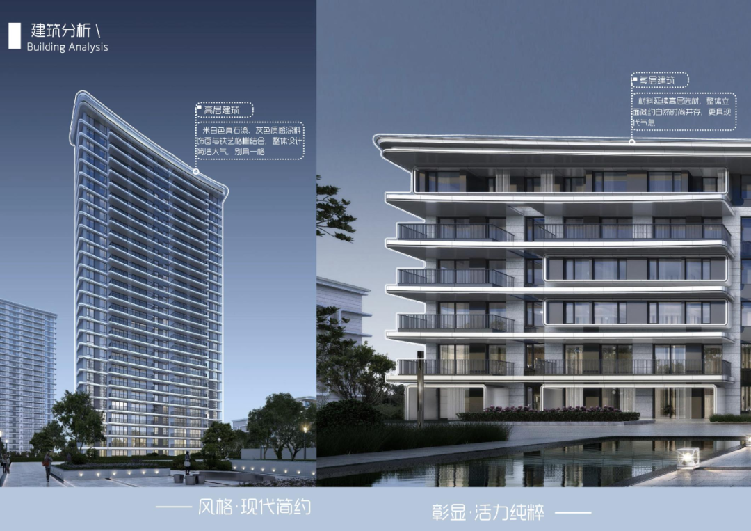 多层建筑,材料延续高层选材,整体立面简约自然时尚并存,更具现代气息。