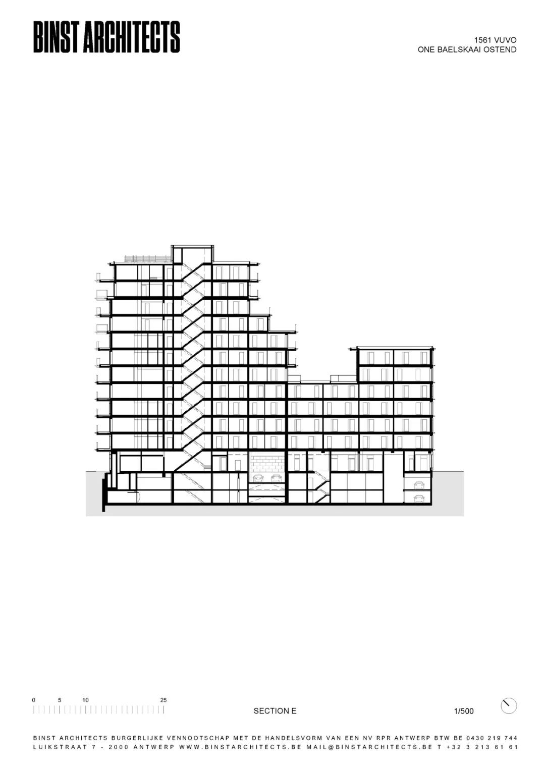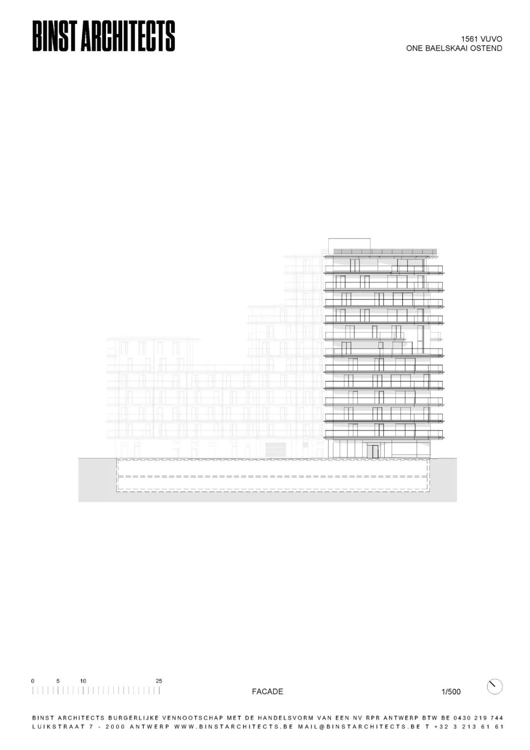 One Baelskaai comprises 78 residential units spread over eleven floors, of which 74 luxury flats and four duplexes. Six commercial spaces are located on the ground floor. Two parking levels are located below grade. The total area of the project is approximately 23,910 m².