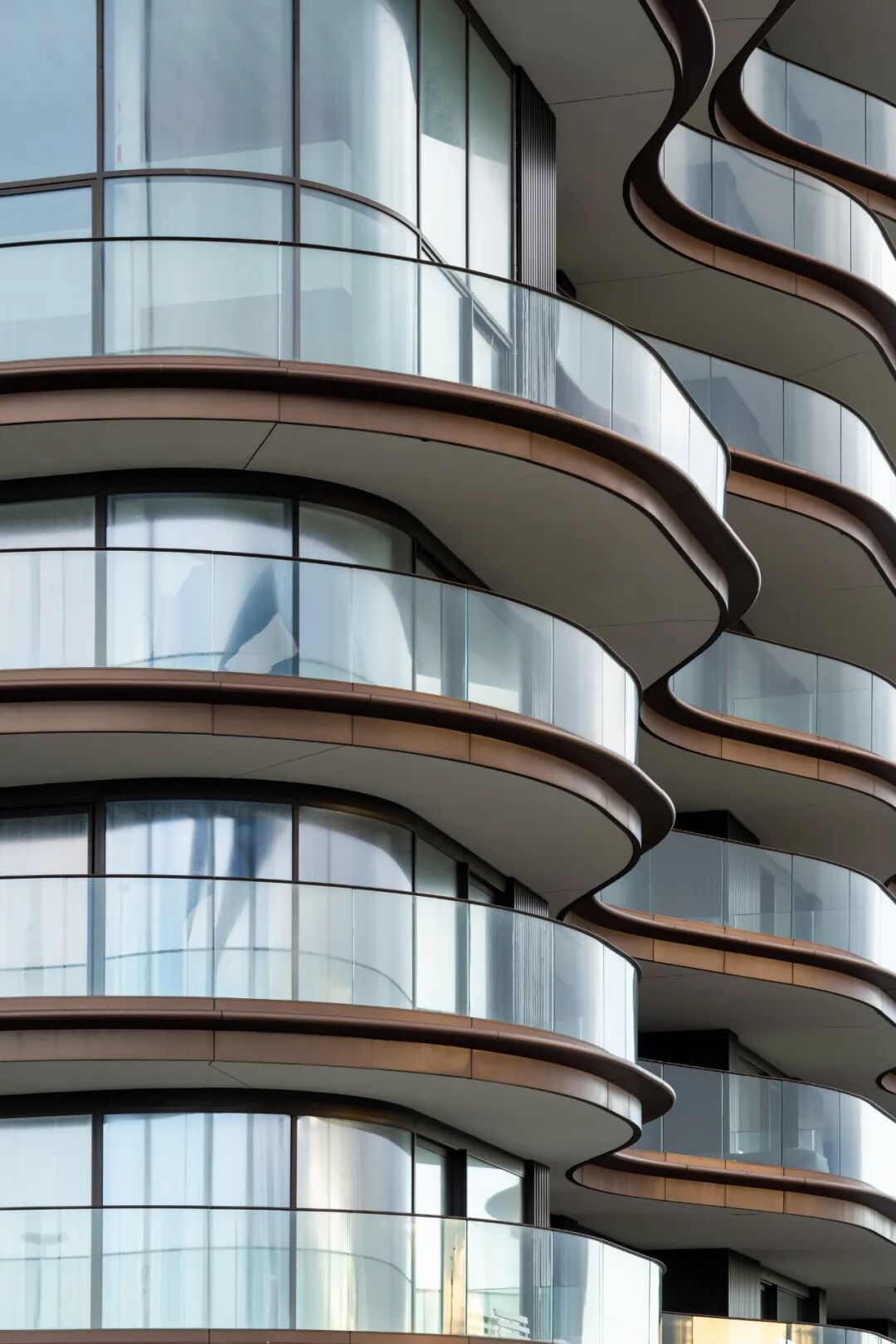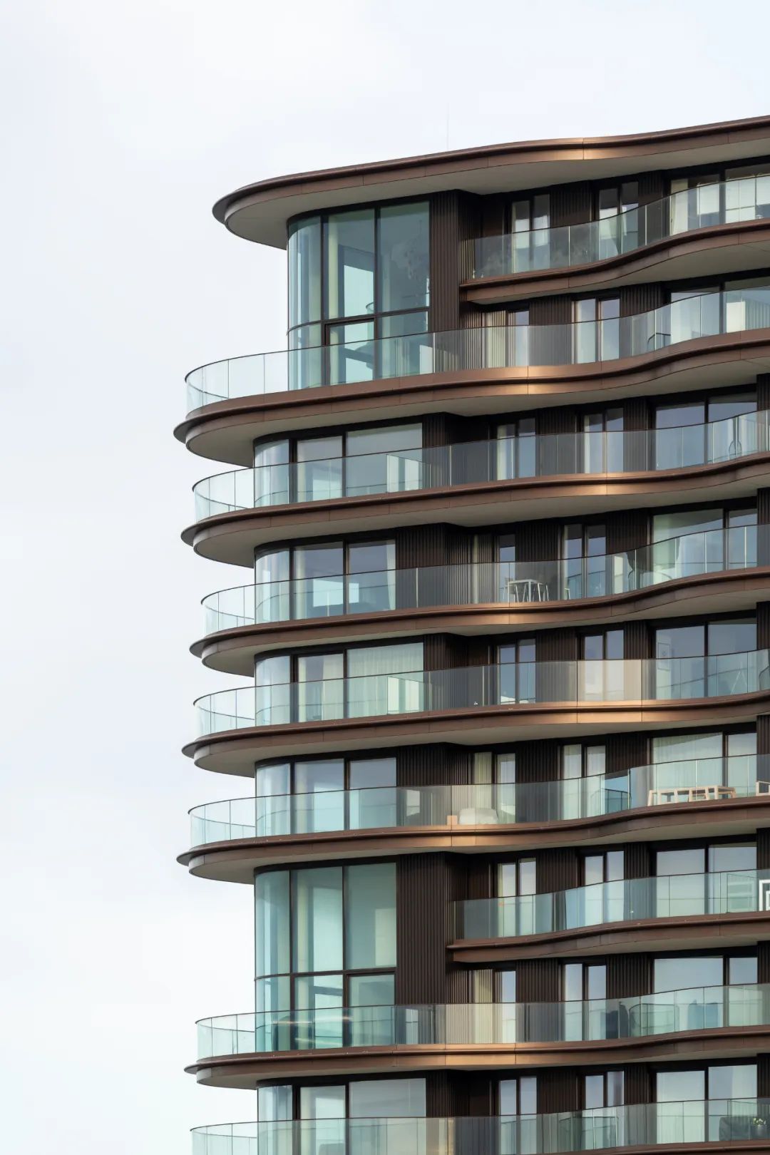 一个具有表现力的边缘的起伏梯田的建筑指的是周围的沿海地区,而与复杂的物质化紧密的细节相结合,它给这个项目一个强大的,豪华的外观。