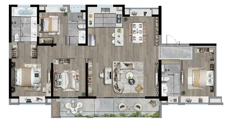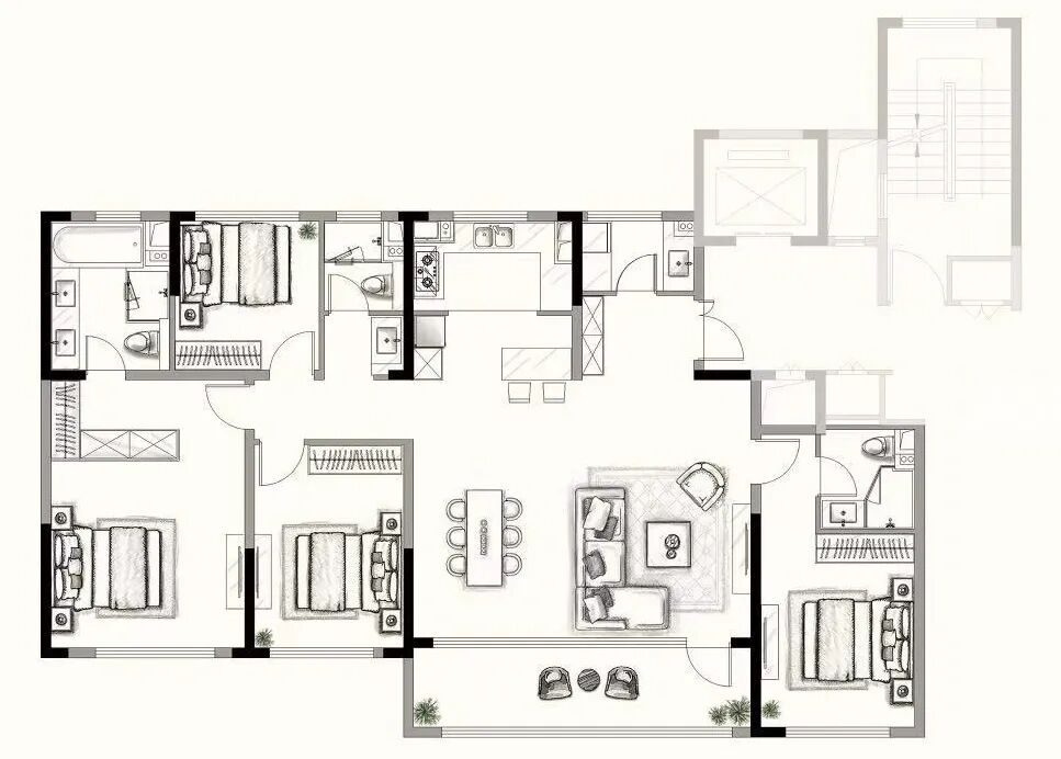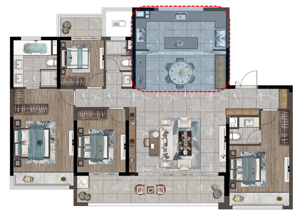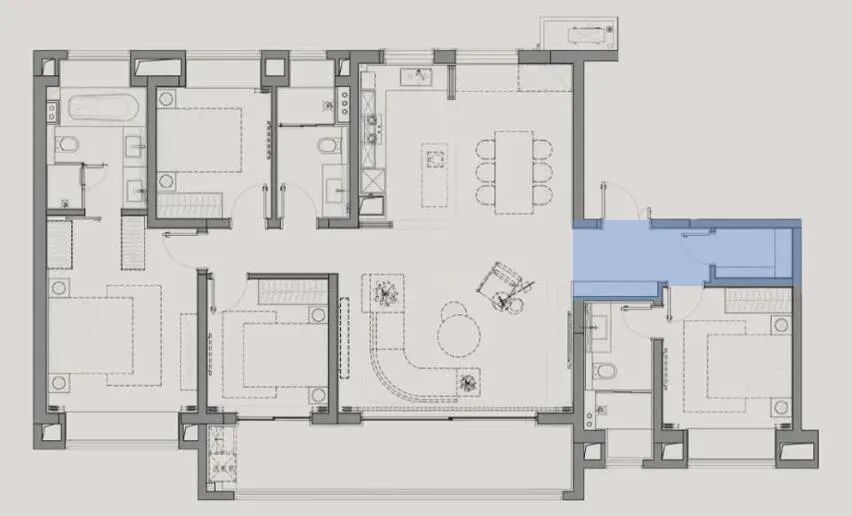 客厅+1空间的打造,实现更丰富生活场景的打造。户型空间不再只是承载日常生活的居所,更在潜移默化中契合当代生活方式和未来的居住需求。