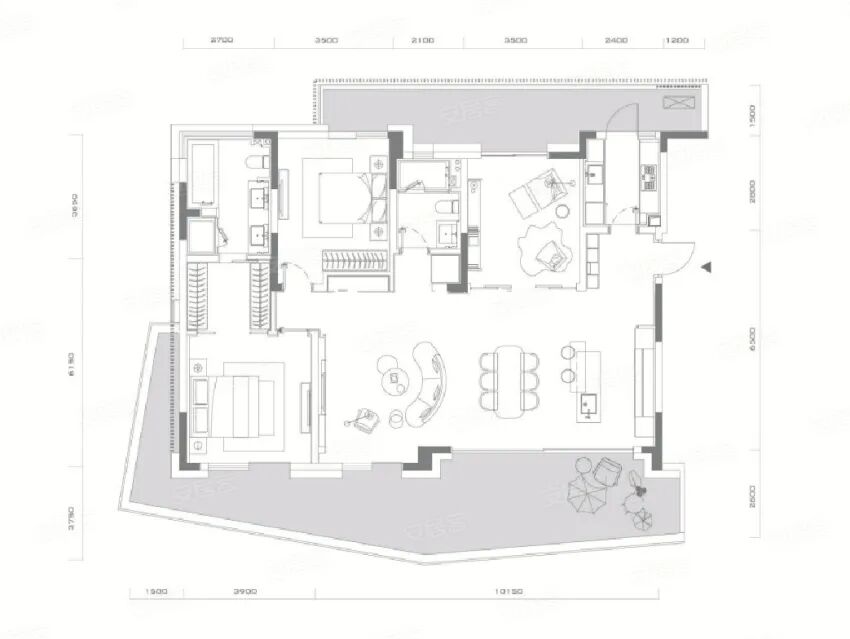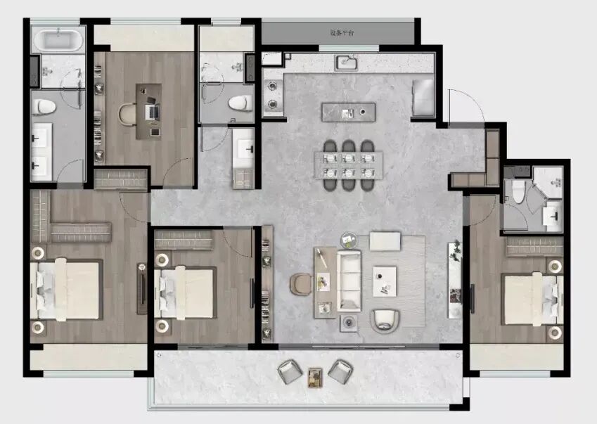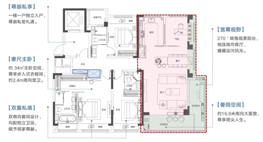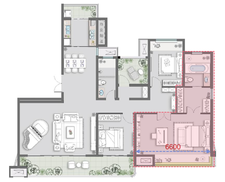 ①、双套房设计,各自都拥有私密性