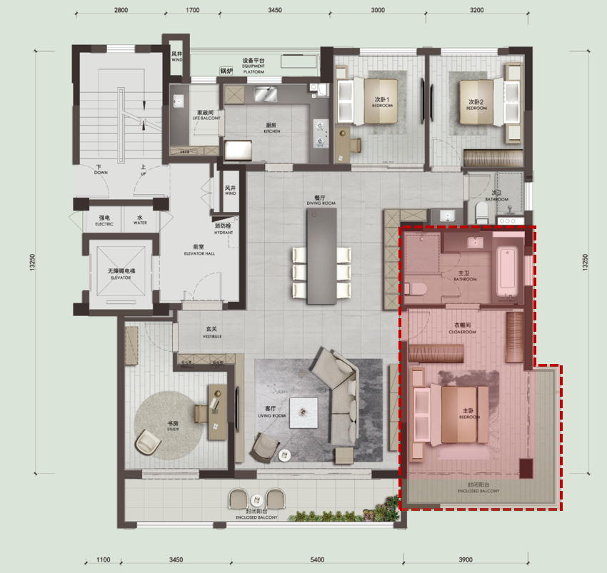②、私享性更高、功能更全的豪华主卧