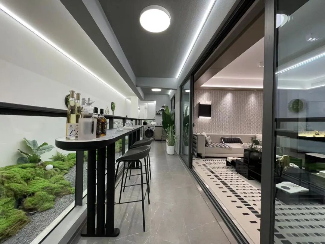 动区,客厅270°的转角阳台,可作为室内的功能拓展区,健身、绘画、音乐,业主可以随心定义。