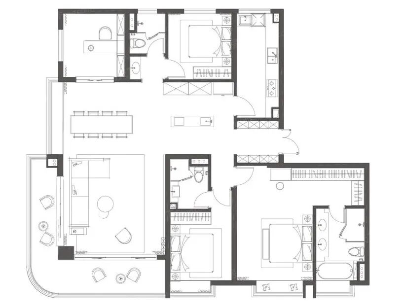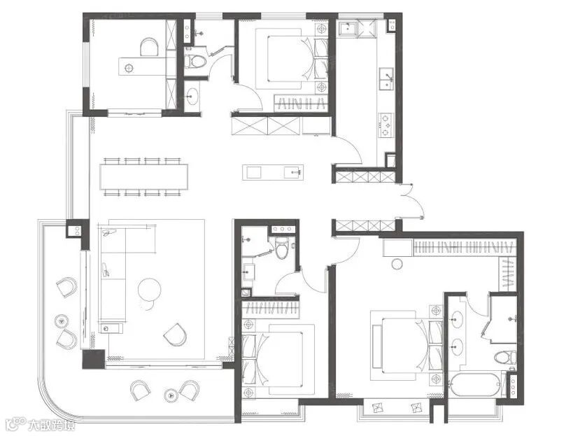 成都德信弘阳湖畔云璟,建筑面积约189㎡户型,10余米长L型全观景通透阳台弧度分明,实现了客厅三面采光,柱的设计大大增加了厅的景观视野,双套房设计也能照顾到更多家庭成员的居住体验。关注经典人居