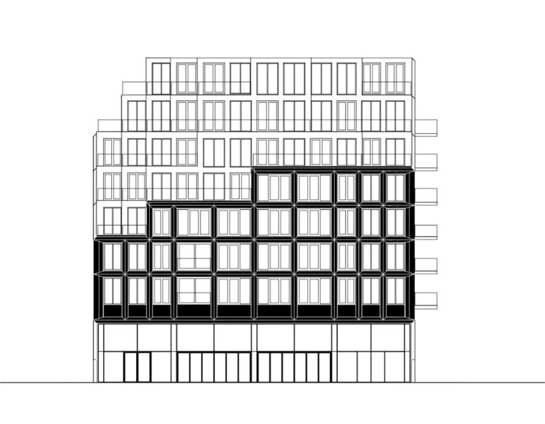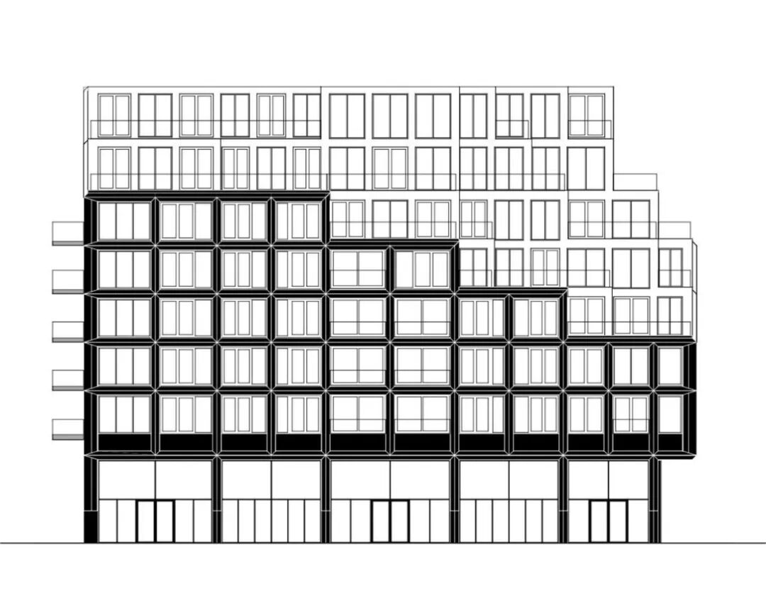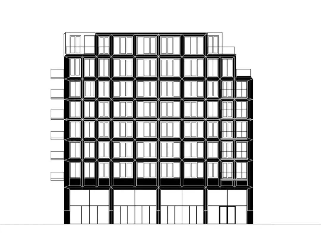 Craft and character. Mercado’s facade is made from ceramic elements. In close collaboration with ceramic manufacturer NBK and facade builder Bijlbouw, samples and mock-ups were used to find the perfect blue-green glaze for the facade with its custom-made details. Thanks to this glaze, the building appears a different color in every type of weather, and a layering of color and form can be discerned adding a touch of artistry that refers to the richness of Groningen’s historical buildings and the optimistic rawness of post-war architecture. The reconstruction architecture on Grote Markt is characterized by glass, precast concrete, and natural stone, while the orphanage stands out with its ornaments and stucco facades in pastel shades. Mercado, with its beige clay and semi-transparent glaze, blends in well with both the pastel Weeshuis and the post-war block’s stone-like materials.