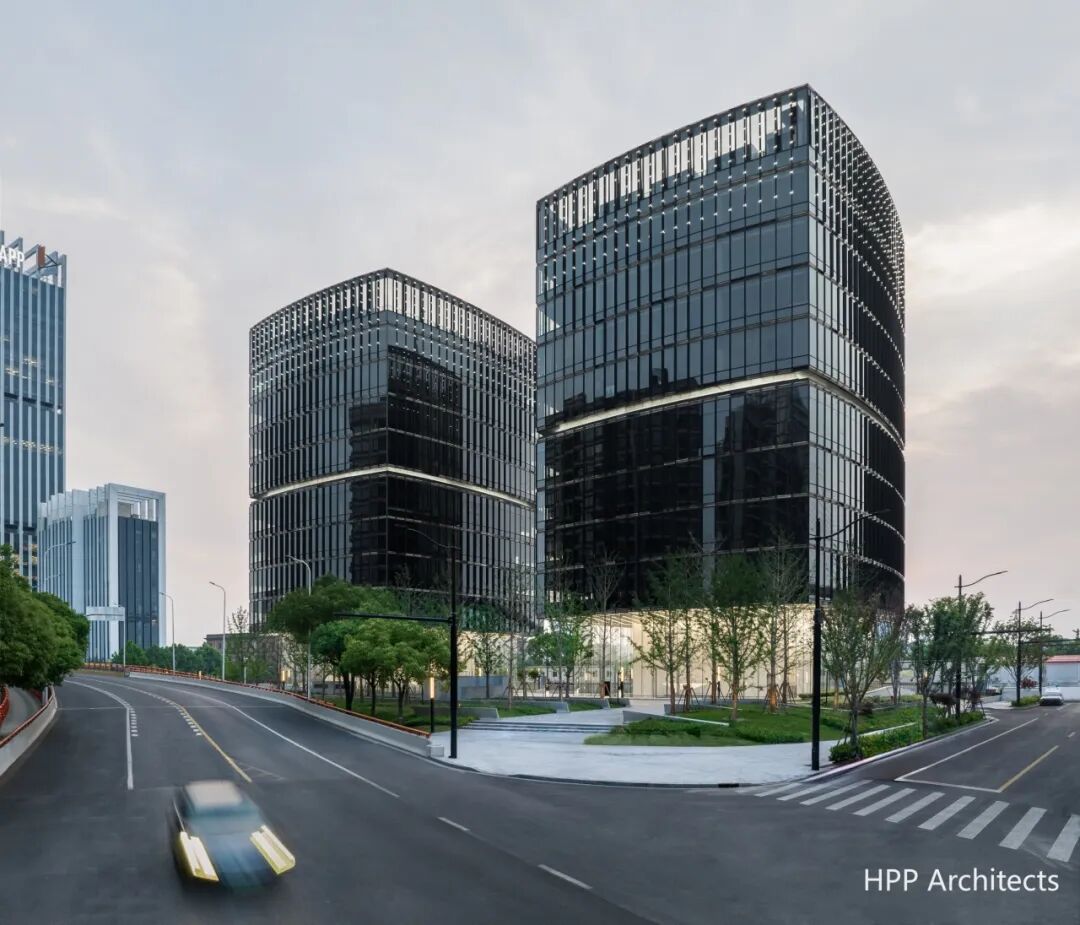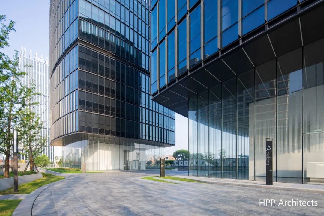 The curved contour of the facade is fitted by flat glass. The vertical decorative rods play a partial shading role, and their size changes according to sunlight angles, creating beautiful and dynamic light and shadow rhythms. The expression of materials and structures on building facades is restrained as much as possible, striving to highlight the original form sense of buildings, strengthen changes in upper and lower volumes and contrasts in material textures.