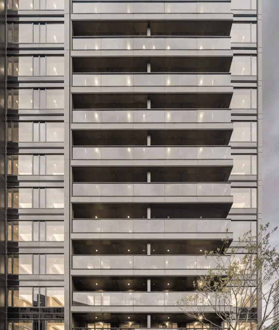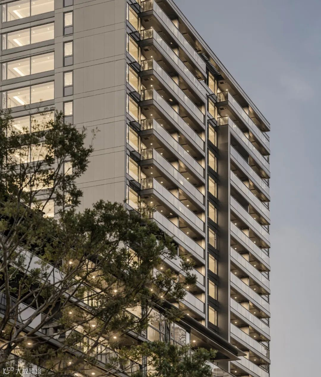 办公塔楼的主立面在玻璃幕墙外,设有规整有韵律感的建筑立面构件,在达到遮阳效果的同时,创造出富有变化的阴影效果。