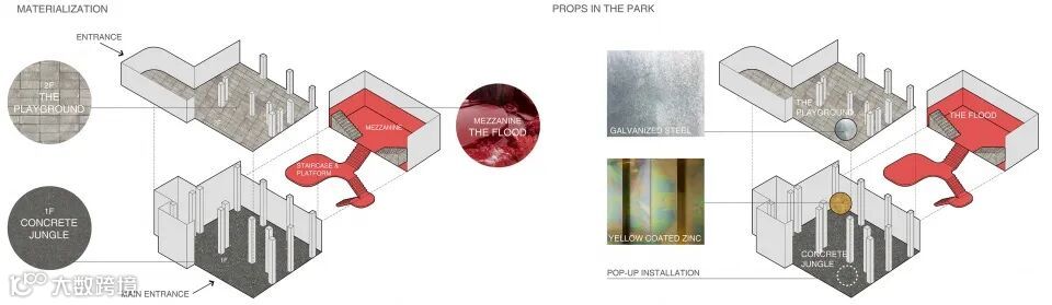 所有的材料及陈列家具,都在讲述自然和工业的关系,也强调着在公园中”玩儿“的概念。