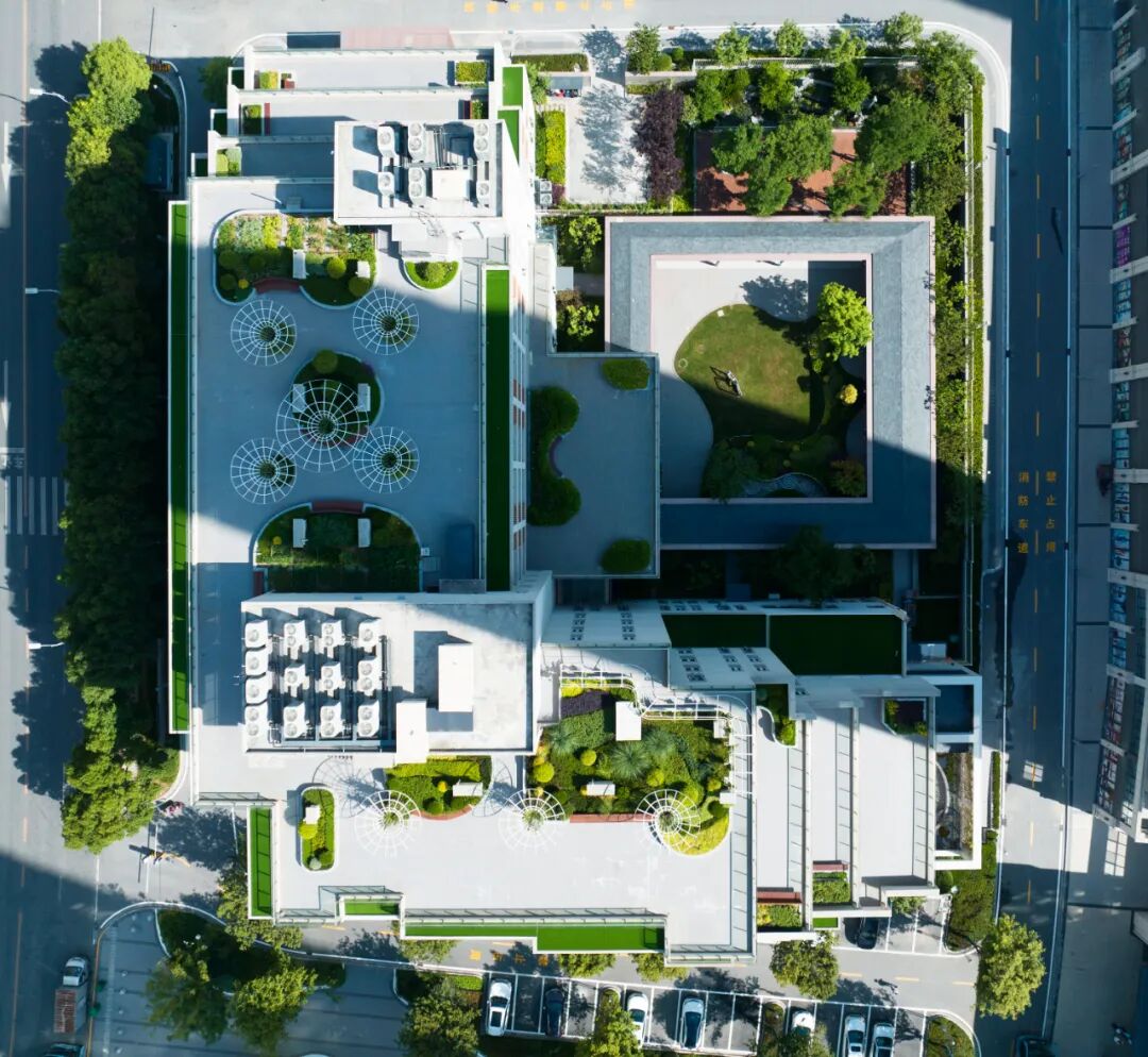 屋顶上人绿化屋顶的打造,有专属的电梯直达,为养老中心的老人打造了一个屋顶的绿化花园,配合绿植与景观,为老人的生活空间扩宽了户外空间的体验与可以培养住户之间的感情,以促进人与人之间的接触和交流。