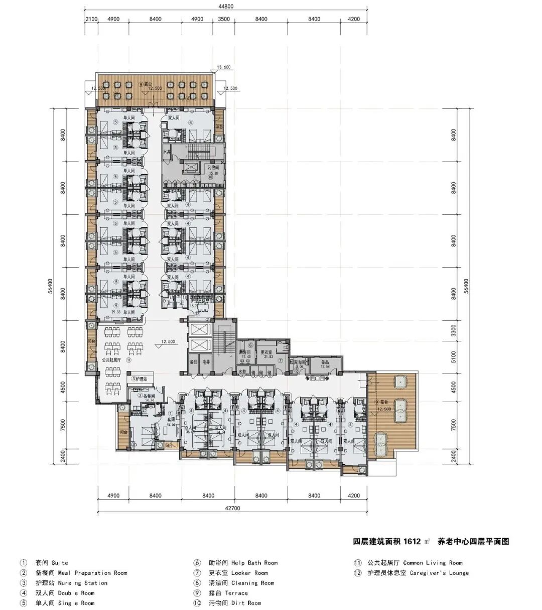 养老与幼教跟大型社区配套,是目前大型社区配套的标准模式。博元养老中心就是在这个大的背景下设计,建造,并且运营的。建成后的博元养老中心,不仅为社区居民提供了日间养老服务和养老居住服务,还为城市片区的养老提供了需求,为城市打造了一座高质量的温馨舒适的现代健康养老中心。