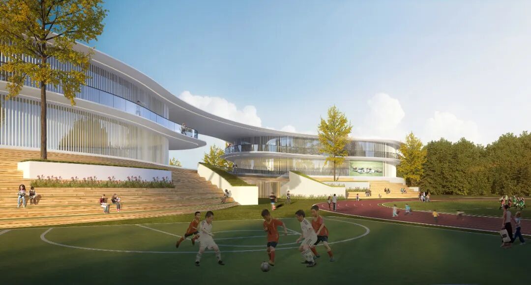 体育馆和食堂形成的云谷之门,是教学区和体育区的过渡空间。在风景优美的远山框景下,这里将成为学生最喜爱的空中看台,留下美好的青春记忆。
