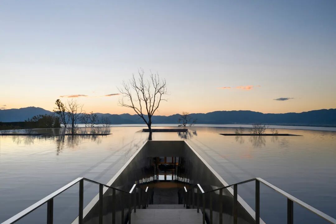 Growing in nature and melting in nature - The project makes full use of the original existing natural landscape and the topographic features with large height differences and adopts the spatial approach of extending downward. While ensuring low intervention in the ecology, the waves of the lake are injected into the roof, softly covering the hillside, echoing the Fuxian Lake in the distance, and blending with nature.