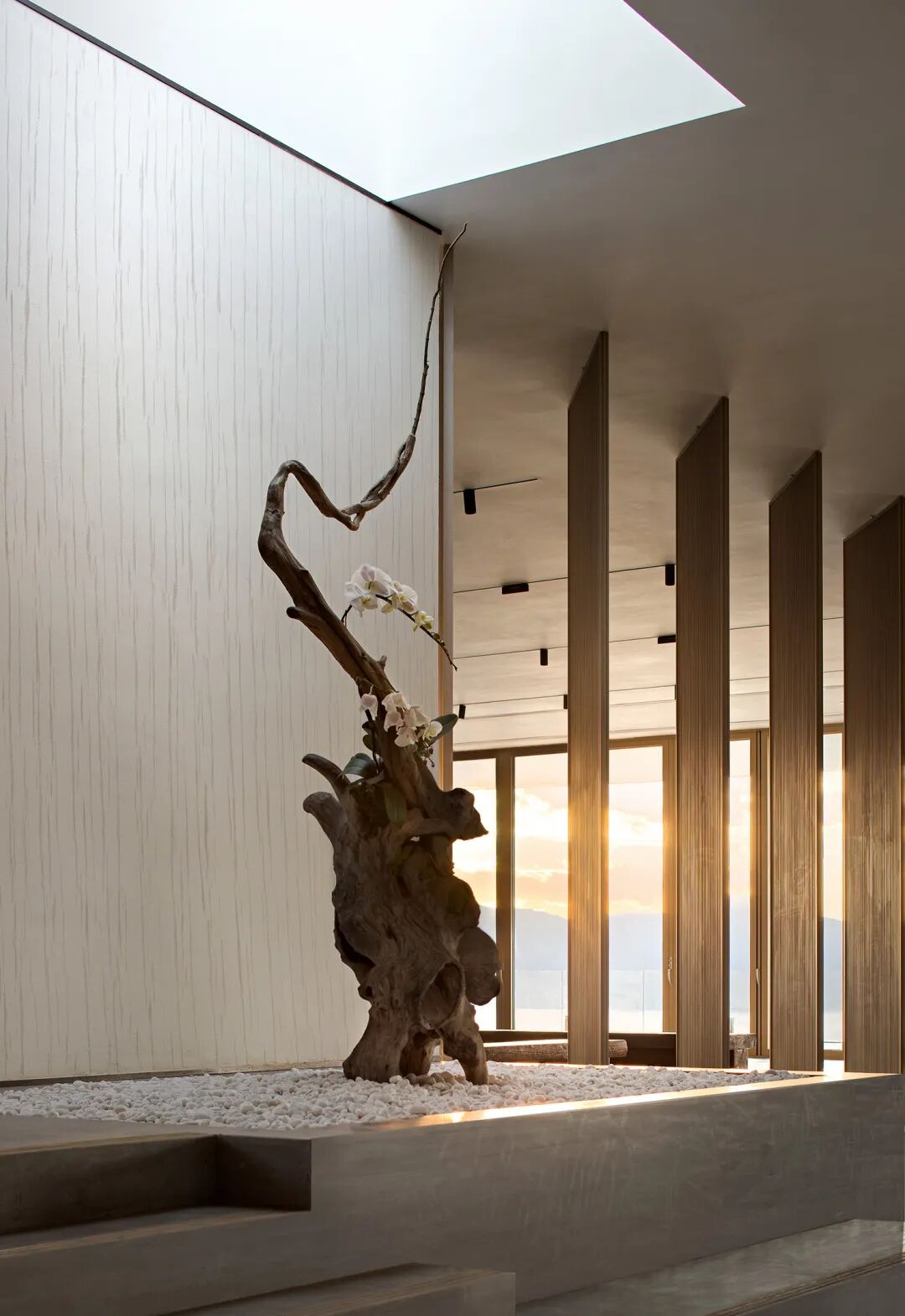 Blurred boundary between inside and outside - Through the fully open glass curtain wall, the warm breeze and bright sunlight from the lake view surface are brought in; the interior space is equipped with multiple sunlight patios to form an open and bright spatial pattern. Light and air from the outside flow freely within the building, creating the comfort and peace of mind of a natural cave.