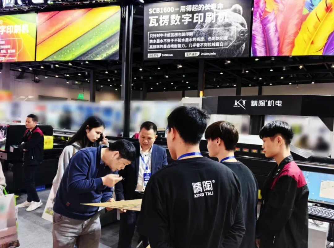广州精陶机电设备有限公司(以下简称:精陶)成立于2012年,专门从事工业数字设备研发与制造的高新技术企业,致力于推动数码喷墨技术在陶瓷、建材、包装行业的发展,为行业产业升级提供先进的工业数字应用解决方案。本届展会现场,精陶展出了领先的数字印刷整线解决方案——SCB2600高速瓦楞数字印刷机。