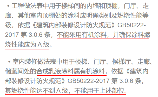 可以看到,在上表中提到涂料的仅为B1级,不能达到A级要求。