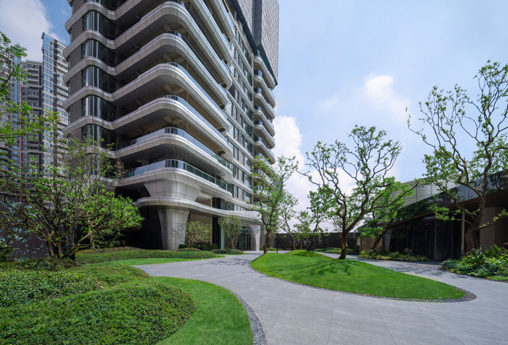 以“编织蜀光交叠森语”为设计灵感,布局“一轴两苑十六园”景观园林,将蜀绣编织技艺融入景观造诣,织造当代都市度假生活蓝图。沿约200米花园中轴,将整个园林分为南北两苑,16个主题空间点缀其间,遵循动静结合、承上启下的空间手法,将五种功能空间交错布局,形成引人入胜、渐入佳境的五进归家动线。