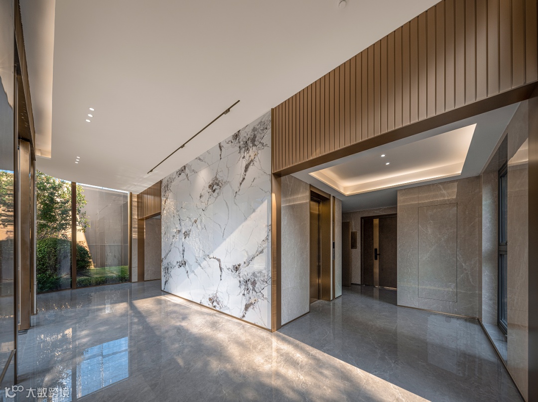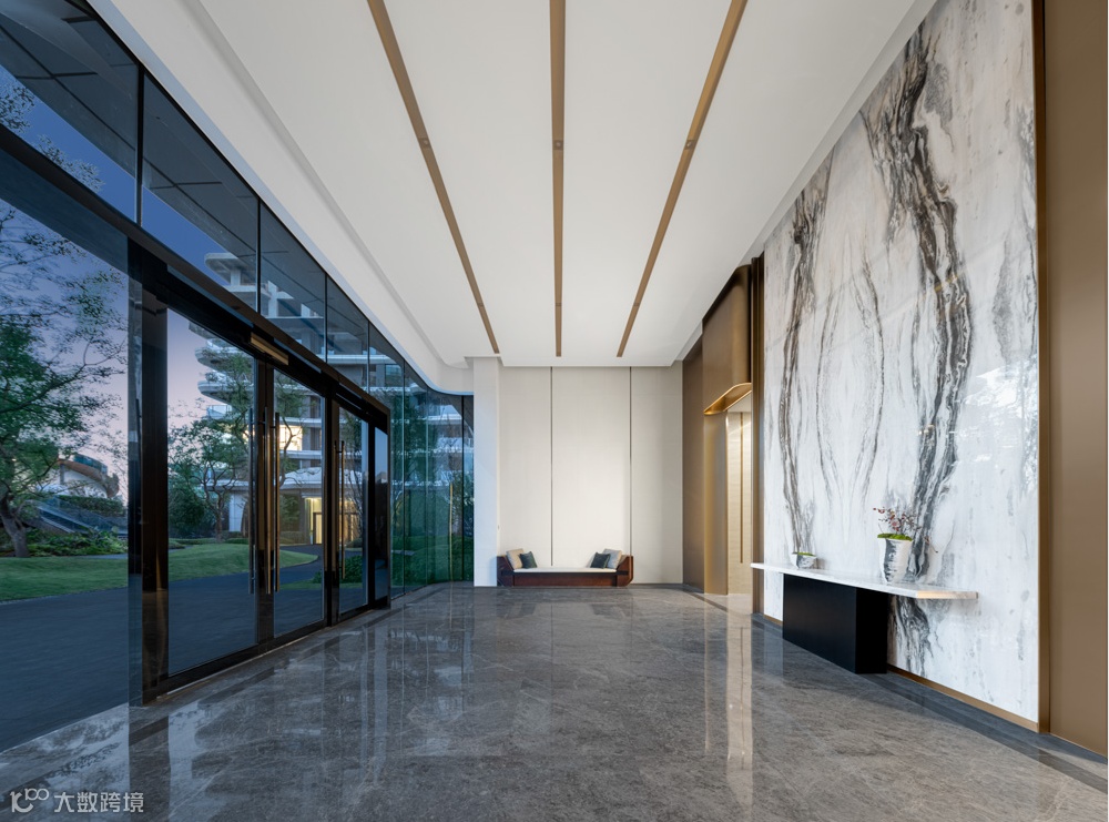 叠拼花园入户,大堂、车库、电梯等归家礼序中途经的公共区域全精装设计。